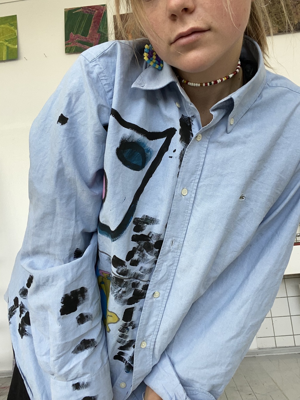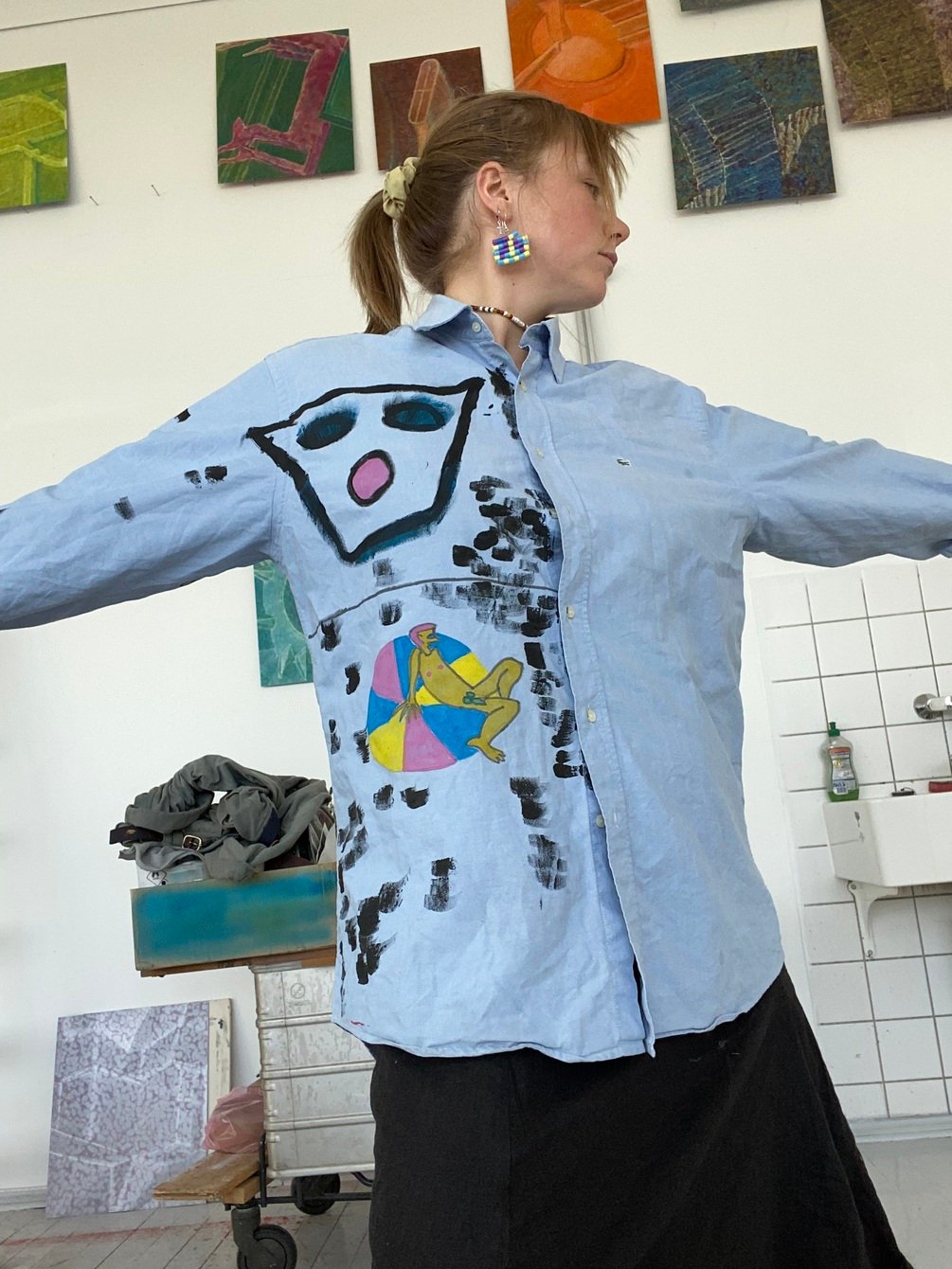 Parts of my body on Lacoste shirt. This item with me from Lisbon. this painting symbolizes the chaotic and absurdity of life. combined with rigor and composure at the same time. crazy time.